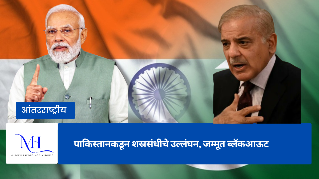 युद्धबंदी जाहीर झाल्यानंतर अवघ्या चार तासात पाकिस्तानकडून बारामुल्ला आणि राजौरी परिसरामध्ये गोळीबार करण्यात आला आहे. युद्दबंदीनंतर पाकिस्तानने हे कृत्य केल्याने जम्मूमध्ये ब्लॅकआऊट करण्यात आला आहे. भारताने याला जोरदार प्रत्युत्तर देण्यास सुरूवात केली आहे, पाकिस्तानकडून झालेल्या शस्रसंधीचे उल्ल्ंघन झाल्यानंतर श्रीनगरमध्येही स्फोटाते आवाज ऐकू आले. जम्मूमध्ये जसे ड्रोन दिसले, तसेच ड्रोन राजस्थानमध्येही दिसले असल्याचे सांगण्यात येत आहे. पाकिस्तानच्या या कारवाईला जोरदार प्रत्युत्तर देण्याचे आदेश गृहमंत्रालयाकडून देण्यात आले आहे.