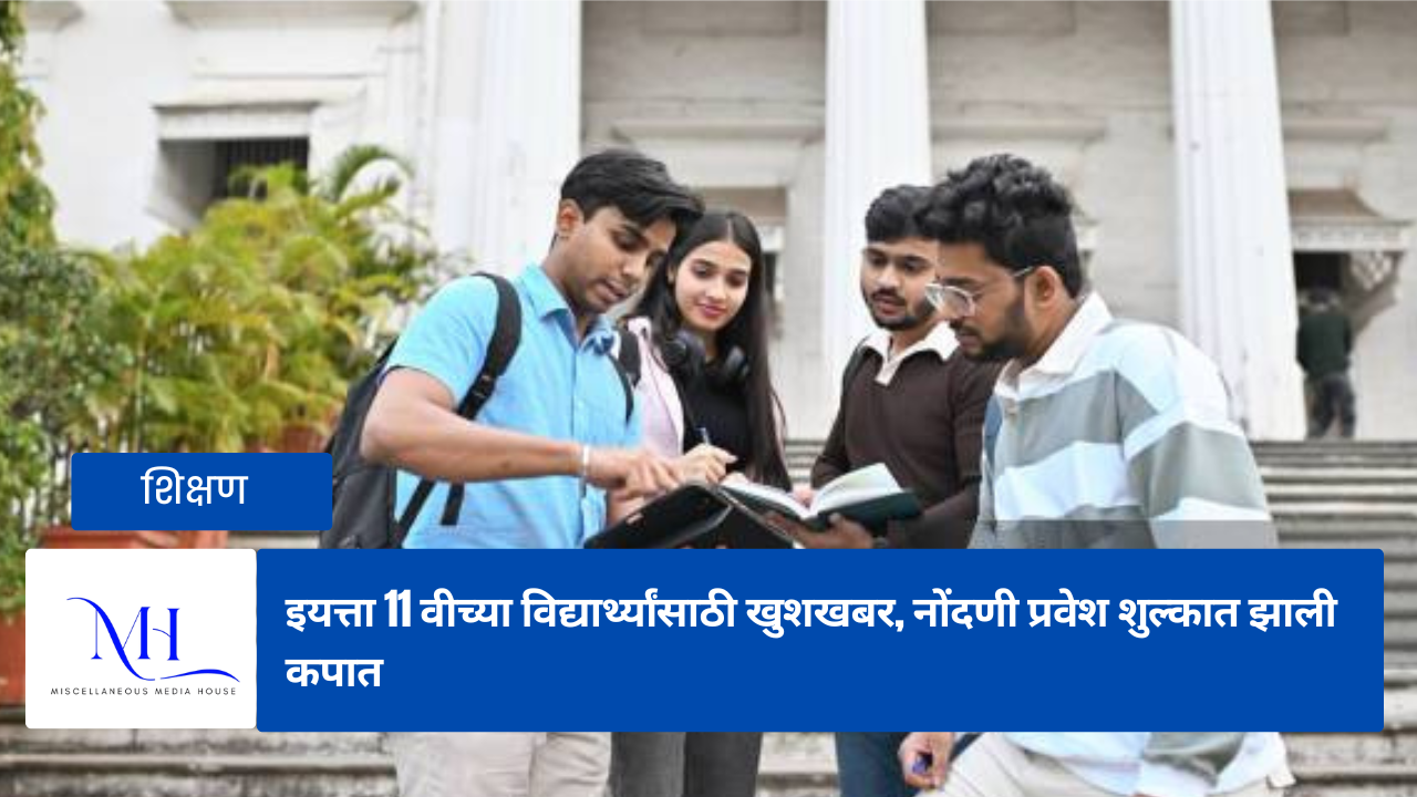 महाराष्ट्रातील विद्यार्थ्यांसाठी एक मोठी खुशखबर आहे. यावर्षीपासून इयत्ता 11 वीत प्रवेश घेणाऱ्या विद्यार्थ्यांच्या प्रवेश शुल्कात कपात करण्यात आली आहे. त्यामुळे विद्यार्थ्यांना बराच दिलासा मिळणार आहे. येत्या शैक्षणिक वर्षापासून राज्यभरातील अकरावीची प्रवेश प्रक्रिया केेंद्रीय ऑनलाईन पद्धतीने राबवण्याचा निर्णय शालेय शिक्षण विभागाने घेतला आहे. त्यासाठी भरवण्यात यावी लागणाऱ्या नोंदणी शुल्कात कपात करण्यात आली आहे.