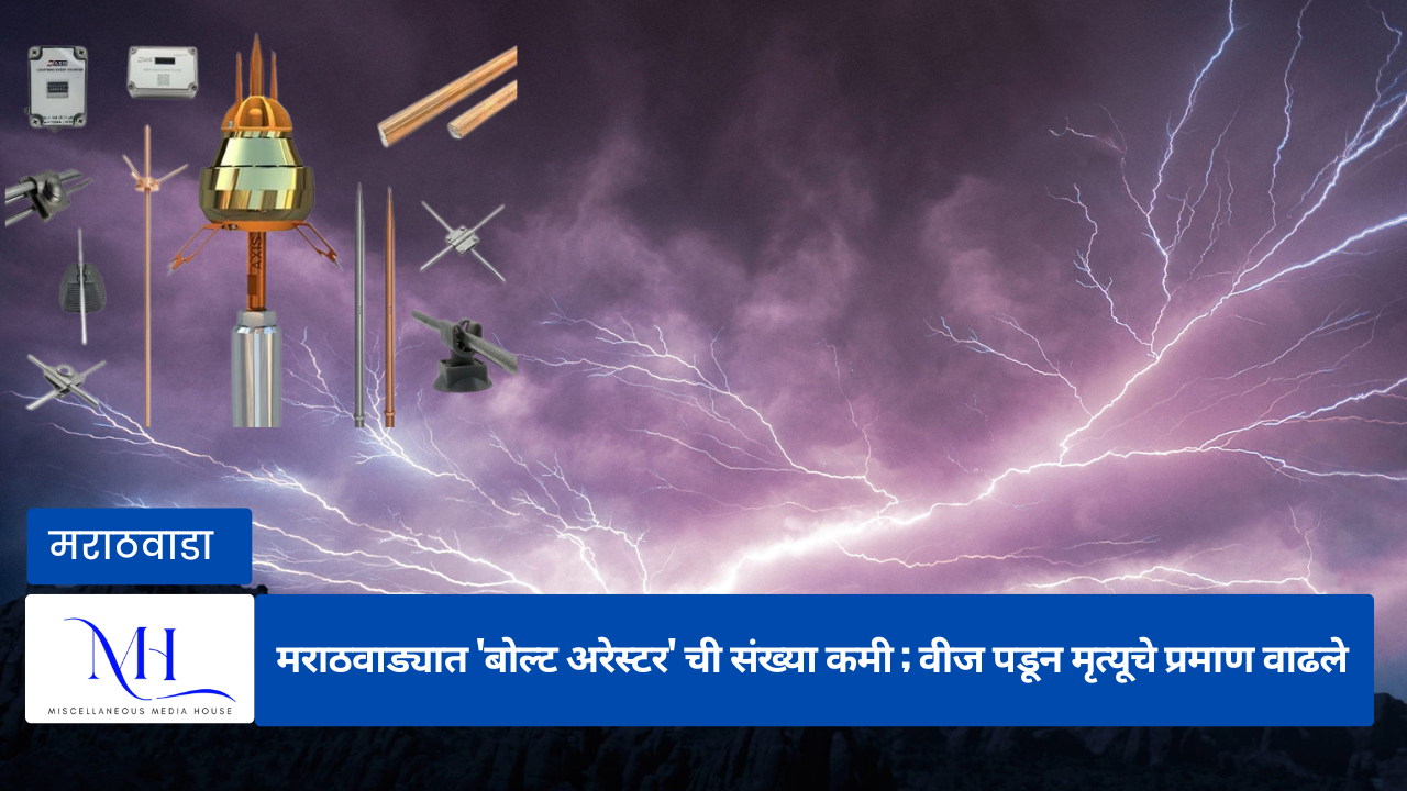 महाराष्ट्रात सध्या जोरदार पाऊस सुरू आहे. मान्सूनच्या आगमनाला अजून पंधरा दिवस बाकी असताना, त्याआधीच पावसाला सुरूवात झालेली आहे. सध्या मुंबई, पुणे, कोकण , मराठवाडा आणि विदर्भात जोराच्या पावसासह वीजांचा कडकडाटही होत आहे. अशा पावसामधील विजांच्या कडकडाटामुळे दुर्घटना होण्याचा संभव जास्त असतो. मराठवाड्यात अशा वीज पडून होणाऱ्या अपघात आणि मृत्यूचे प्रमाण ( Marathwada Lightning Deaths ) जास्त आहे. अशा अपघातांना कमी करण्यासाठी किंवा रोखण्यासाठी बोल्ट अरेस्टर (Bolt Arester) सारखे उपकरणं बसवण्यात आलेले नाहीत. बोल्ट अरेस्टर सुरक्षात्मक उपकरण असते. आकाशात चमकणाऱ्या वीजा पडताना त्या वीजा सुरक्षितपणे जमिनीत टाकण्यासाठी या उपकरणाचा वापर होतो. या उपकरणाच्या सहाय्याने वीजेमुळे होणाऱ्या अपघातांचे प्रमाण होते.