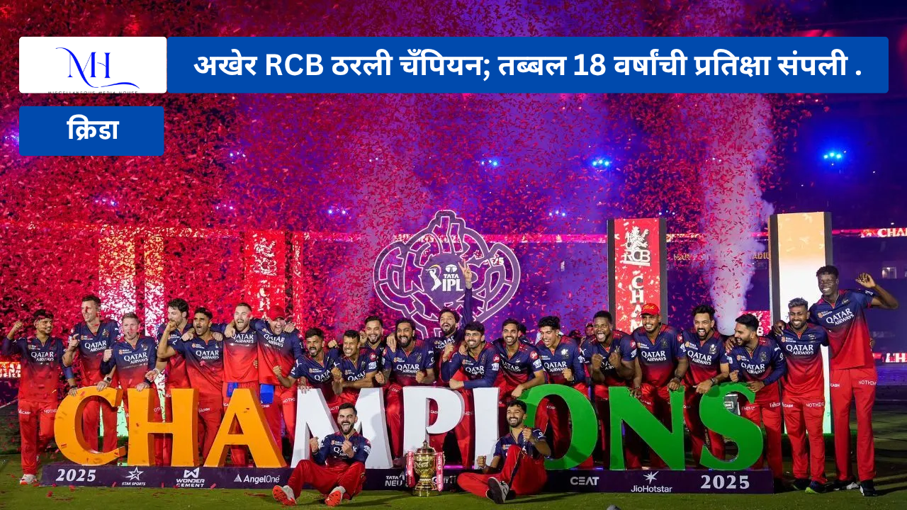 तब्बल सतरा वर्षांची प्रतिक्षा संपली आणि विराट कोहलीच्या हाती IPL ची ट्रॉफी विराजमान झाली. रॉयल चॅलेंजर्स बंगळुरू ने IPL च्या 18 व्या सीजनमध्ये आपल्या नावावर पहिल्यांदाच ट्रॉफी नोंदवली आहे. अहमदाबादच्या नरेंद्र मोदी स्टेडीयमवर मंगळवारी हा फायनलचा रंगतदार सामना पार पडला. पंजाब किंग्जला 6 धावांनी पराभूत करत RCB ने आपल्या नावावर पहिली ट्रॉफी जिंकली. आणि पंजाब किंग्ज विजेपदाने हुलकावणी दिली.